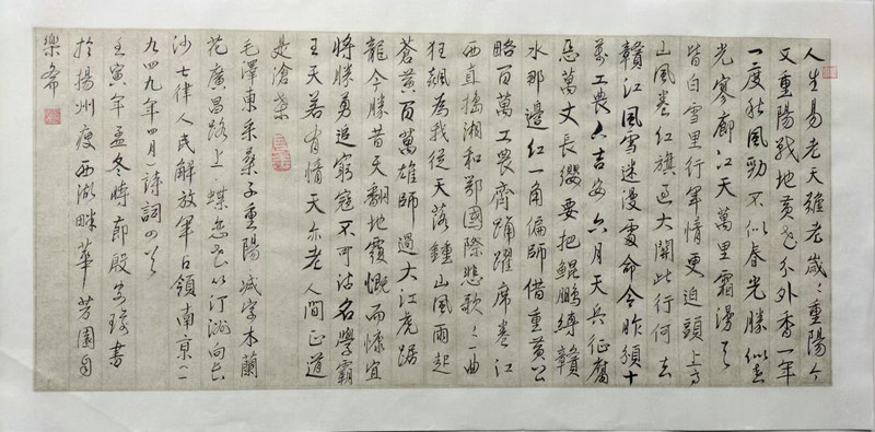 行書毛澤東詩(shī)詞抄2022-12-13今年十二月二十六曰,是毛澤東主席誕辰周年,我以崇敬的心情書寫了偉人數(shù)十首詩(shī)詞。毛澤東,(年年),字潤(rùn)之,湖南湘潭人。中國(guó)人民的偉大領(lǐng)袖,偉大的馬克思主義者,偉大的無(wú)產(chǎn)階級(jí)革命家、戰(zhàn)略家、思想家、理論家,軍事家,中國(guó)...
