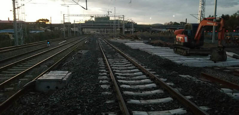 新建動(dòng)車(chē)存車(chē)場(chǎng)是客整所工程的重要組成部分,針對(duì)當(dāng)天的封鎖計(jì)劃,項(xiàng)目部召開(kāi)專(zhuān)題會(huì)議,制定了詳細(xì)的作戰(zhàn)方案,配備了近百名施工人員,兩臺(tái)挖掘機(jī)、裝載機(jī)和一臺(tái)叉車(chē),大到整體規(guī)劃,小到人員站位,超前預(yù)想,完善措施。二工區(qū)經(jīng)理吳佰峰提前半小時(shí)就組織施工人員到達(dá)現(xiàn)場(chǎng),22:00整,封鎖命令下達(dá)后,現(xiàn)場(chǎng)作業(yè)哨聲響起,工人們迅速上道,開(kāi)始了緊張的操作。由于項(xiàng)目經(jīng)理袁正國(guó)、常務(wù)副經(jīng)理郭慶富、安全總監(jiān)費(fèi)亞臣始終在現(xiàn)場(chǎng)協(xié)調(diào)指揮,鼓舞了士氣,封鎖施工過(guò)程進(jìn)展順利。自動(dòng)車(chē)存車(chē)場(chǎng)開(kāi)工以來(lái),項(xiàng)目部采取分階段倒場(chǎng)過(guò)渡方案施工,圍繞現(xiàn)場(chǎng)環(huán)境組織精干力量,用方案指導(dǎo)現(xiàn)場(chǎng),班子成員包保監(jiān)控,力保新鋪和預(yù)鋪的各線(xiàn)順利推進(jìn),也為此次封鎖順利開(kāi)通奠定了基礎(chǔ),更為按時(shí)兌現(xiàn)客整所節(jié)點(diǎn)提供了保障。