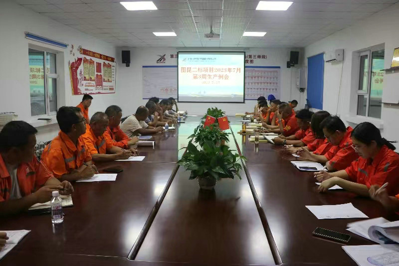 圖木舒克訊(通訊員 曾雷)7月21日,圖昆公路二標(biāo)項目部召開施工生產(chǎn)例會,項目部領(lǐng)導(dǎo)、各部門負(fù)責(zé)人、施工班組長共42名人員參加了會議,會議由項目經(jīng)理董軍主持。