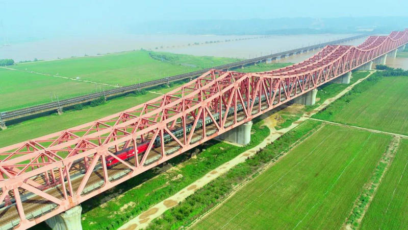 鄭州黃河兩岸郁郁蔥蔥 極目而望,橙紅色的京廣鐵路黃河大橋橫跨南北 在炎黃二帝像的注目下 守護著一列列火車安全通過