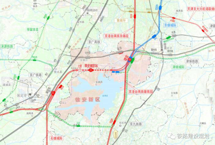 作為雄安新區(qū)“四縱兩橫”區(qū)域高速鐵路交通網(wǎng)絡(luò)的“一橫”,雄忻高鐵起自在建的京雄城際雄安站,向西穿越雄安新區(qū)起步區(qū),在起步區(qū)設(shè)雄安城際站和小里站。該線路自白溝引河?xùn)|側(cè)入地,沿起步區(qū)東西軸線地下敷設(shè),由萍河西側(cè)出地面,向西南折向保定東站。其中,城際站位于啟動(dòng)區(qū)核心區(qū),小里站位于起步區(qū)第一組團(tuán)中心區(qū)域,均規(guī)劃為雄安新區(qū)“三主兩輔”樞紐客站格局中的主客站。