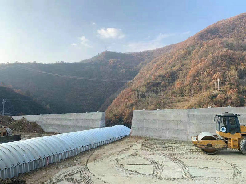 據(jù)悉,該標(biāo)段有橋梁8座、通涵3道。為搶抓時(shí)間節(jié)點(diǎn),該標(biāo)段積極采用“四新技術(shù)”,使用鋼拱型波紋管通道代替鋼筋砼箱涵,有效提高施工效率、降低生產(chǎn)成本。鋼拱型波紋管通道采用廠家定制、現(xiàn)場(chǎng)安裝的平行施工方法,通過底板、側(cè)板、頂板吊裝現(xiàn)場(chǎng)拼裝,每天可完成3-4接,較傳統(tǒng)鋼筋砼箱涵提前45天,同時(shí),相比傳統(tǒng)鋼筋砼箱涵每延米降低造價(jià)25%左右。K76+400鋼拱型波紋管通道是該標(biāo)段首座采用“新材料、新工藝”的通道,它的完成可繼續(xù)施工該段挖方及邊坡防護(hù),進(jìn)而為大毛壩2號(hào)橋上部結(jié)構(gòu)施工提供通道,大大提高了工作效率和安全質(zhì)量。