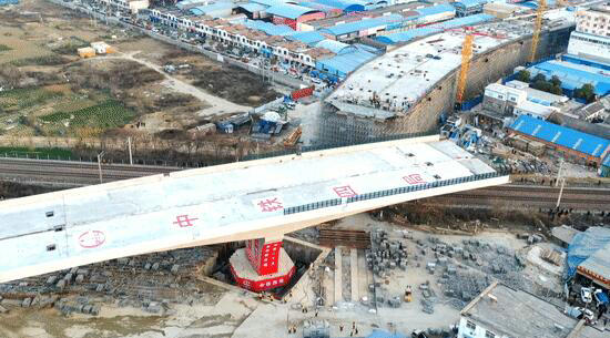 12月22日18時(shí),重1.2萬噸、長120米的T構(gòu)箱式轉(zhuǎn)體梁逆時(shí)針旋轉(zhuǎn)68°,圓滿完成轉(zhuǎn)體就位,標(biāo)志著鄭州鐵路建設(shè)管理有限公司代建的南陽市中心城區(qū)至鴨河工區(qū)快速通道(以下簡稱“鴨河快速通道”)控制性工程取得突破性進(jìn)展。