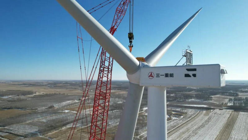 近日,三一重能7.XMW平臺(tái)首臺(tái)風(fēng)電機(jī)組成功完成吊裝,創(chuàng)下全球陸上最大商業(yè)化風(fēng)機(jī)新紀(jì)錄。