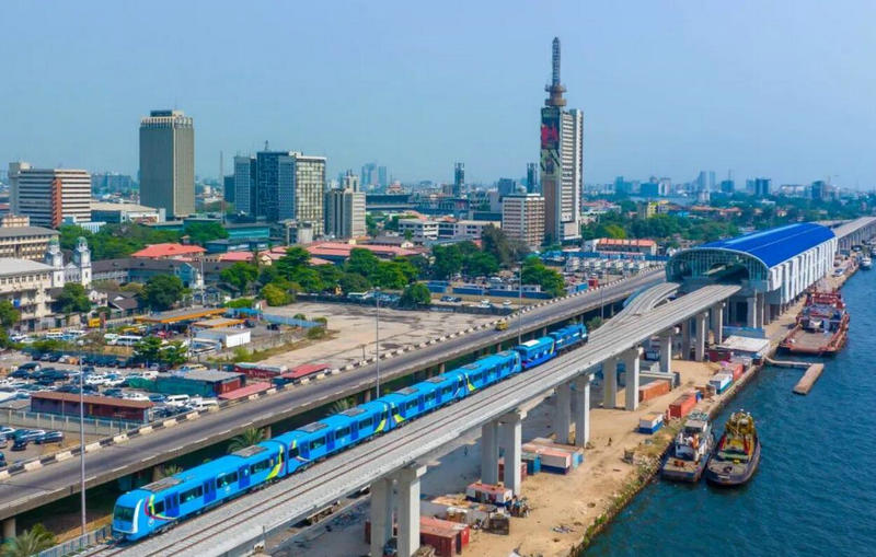 拉各斯輕軌藍(lán)線列車行駛中