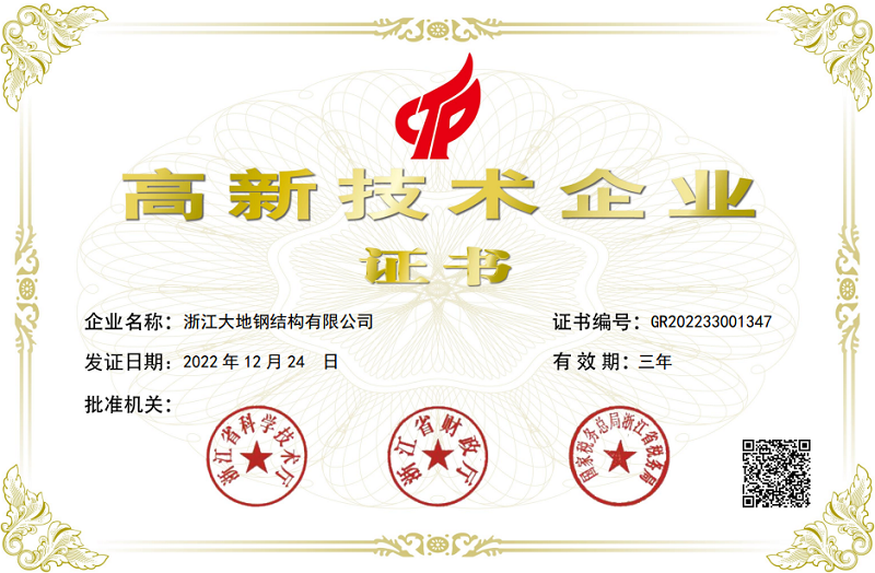 大地鋼構(gòu)順利通過高新技術(shù)企業(yè)認(rèn)定