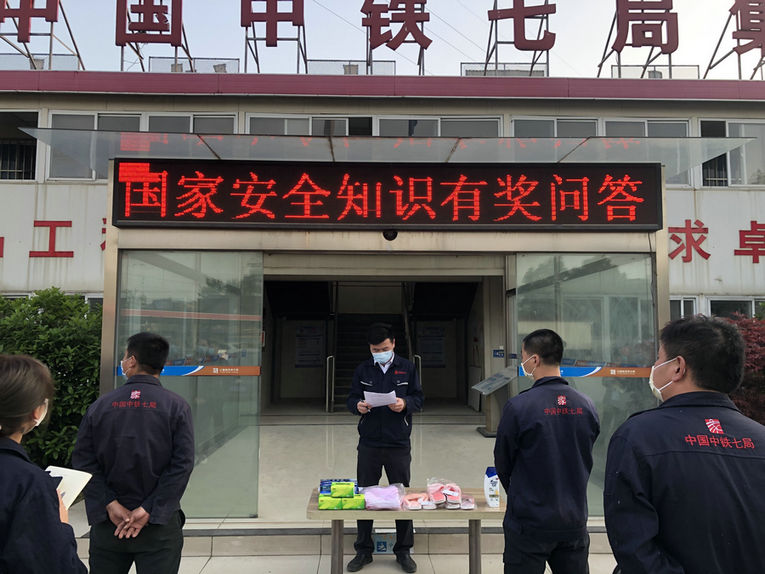 “國家安全教育日”是哪一天?”,“我知道,是4月15日”;“《國家安全法》是什么時間頒布的?”,“這里!這里!是2015年7月1頒布的”、“我國國家安全領(lǐng)域包括哪些方面內(nèi)容?”,“包括:政治安全、國土安全、經(jīng)濟安全……”4月15日,在中鐵七局武漢地鐵5號線八標(biāo)項目部院內(nèi),一場別開生面的有獎競答活動拉開了帷幕,大家爭先恐后參與競答,現(xiàn)場氣氛十分熱烈。
