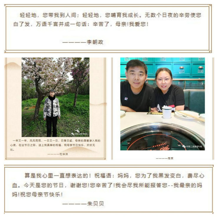 ”親愛的楊老大,小時(shí)候你放棄工作在家?guī)?,長(zhǎng)大后你又把我送到單位。每一次回家看見你越來越多的白頭發(fā)總覺得很心酸,希望你不要在老了。沒有你就沒有我,就沒有我數(shù)十寒暑的悲傷,也沒有我春夏秋冬的歡笑,謝謝您給了我生命中美好的一切與成長(zhǎng)。母親節(jié)快樂!“——高佳