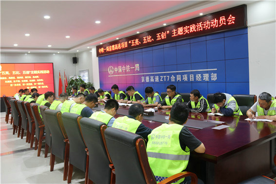 6月1日上午,中鐵一局京德高速ZT7標項目召開“五亮五比五創(chuàng)”主題實踐活動動員會,項目部領(lǐng)導班子,全體黨員、積極分子、各部門負責人參會,活動由黨支部專職副書記趙海濤主持。