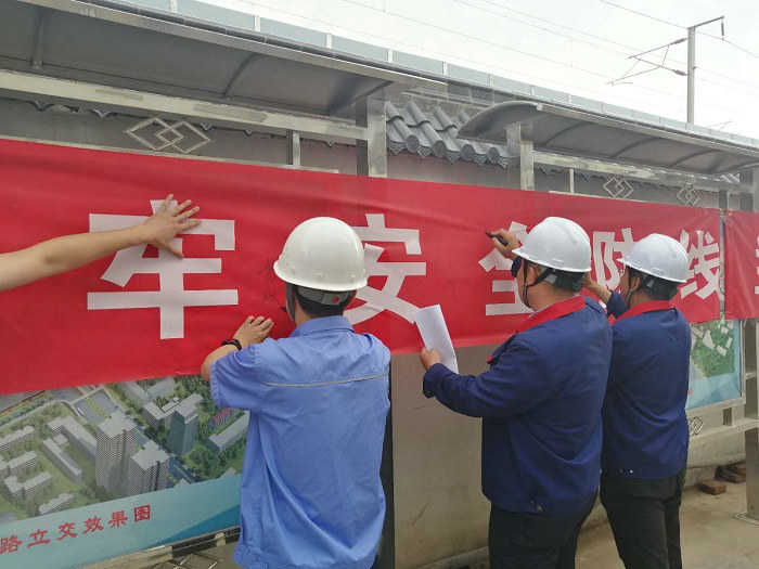 演練結(jié)束后,項(xiàng)目安質(zhì)部還對(duì)員工講解了滅火器的用法和注意事項(xiàng),并指導(dǎo)現(xiàn)場(chǎng)員工使用操作。最后大家在安全生產(chǎn)宣傳橫幅上鄭重簽名。