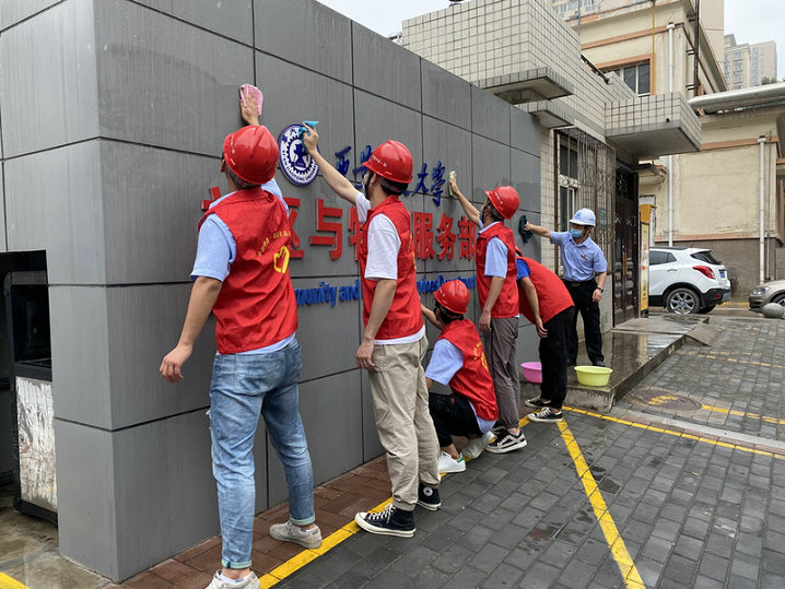 慰問(wèn)活動(dòng)結(jié)束后,項(xiàng)目部黨員代表帶領(lǐng)全體團(tuán)青對(duì)交大社區(qū)衛(wèi)生進(jìn)行了清掃。