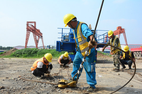 這天一早6時許,魯南項目部的建設(shè)者們便早早投入到緊張的施工:緊固提梁機(jī)走行夾軌器,放置止輪鐵楔、剛?cè)嵬燃庸汤|風(fēng)繩,為提梁機(jī)的正式拆解做最后的準(zhǔn)備工作。“包隊長,你再檢查一下拆解設(shè)備的工機(jī)具是否齊全。”項目部機(jī)械負(fù)責(zé)人劉凡指導(dǎo)完提梁機(jī)加固纜風(fēng)繩后,又匆匆趕到吊車前指揮吊車就位。提梁機(jī)拆解是項目部一項重要工作節(jié)點(diǎn),這一任務(wù)緊張且艱巨,作為年后復(fù)工三個月來,從沒休息過一天的“小鐵人”,施工現(xiàn)場情況少盯控一眼,都讓劉凡坐立難安。