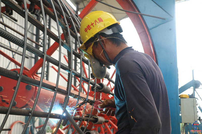 8月8日上午10時,在中鐵十八局合銅9標梁場工區(qū)鋼筋加工產內,陣陣熱浪就迎面襲來,令人窒息,此時正是上班時間。老王正在滾焊機操作臺邊按鈕邊上,雖然滾焊機焊接鋼筋籠十分省心,但他的眼睛死死地盯著滾焊機上的每根鋼筋,生怕有絲毫閃失,是因為他和同伴們一直沒有改變精益求精的初心和一絲不茍的工作習慣。