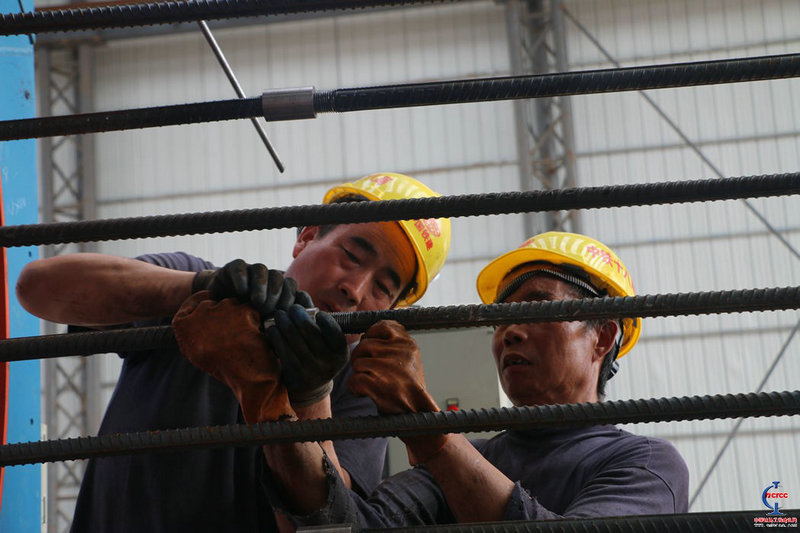 身子緊貼著鋼筋籠,仔細搜尋著籠子的美中不足,套筒是否到位,鋼筋分布是否均勻,焊點有無虛焊。對于移動空間不到50厘米,剛能站住人的操作臺,一手用自制扳手將不到位的鋼筋護送到位,另一只手揮動焊槍,光是這一個動作就已經讓裹在身上的工衣全部濕透,看上去霎時就有了窒息的感覺。