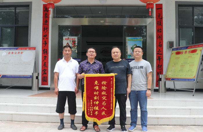 圖為祁門縣柏溪鄉(xiāng)黨委送來錦旗情急之下,鄉(xiāng)政府領(lǐng)導(dǎo)向項(xiàng)目部求援。汛情就是命令,搶險(xiǎn)就是責(zé)任。項(xiàng)目部接到求援信息后,立即同鄉(xiāng)政府對(duì)接,以“群眾利益無(wú)小事,群眾生命安全為大事”為出發(fā)點(diǎn),在項(xiàng)目部自己同樣遭受洪水襲擊的情況下,一邊開展自救,一邊迅速組織人員,調(diào)配機(jī)械車輛協(xié)同地方政府抗洪救災(zāi)。