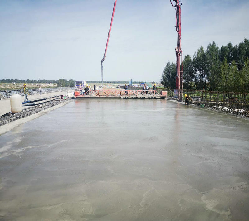 8月2日,中鐵二十一局四公司張扁高速公路項目K59+825 S301一號分離式立交左幅橋面鋪裝混凝土澆筑完成,標志著土建3標段內所有橋梁橋面鋪裝施工全部完成,成為張扁高速公路項目第一個完成橋面鋪裝施工的標段。
