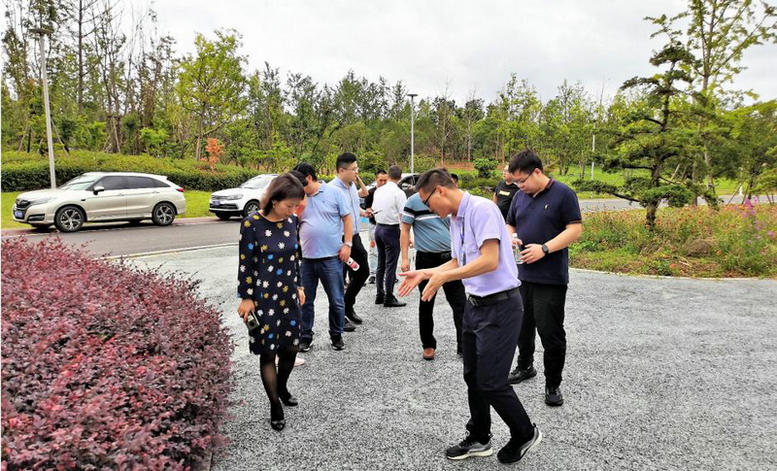在月亮湖公園,調(diào)研組首先聽取了中交四公局項(xiàng)目負(fù)責(zé)人關(guān)于工程總體規(guī)劃、運(yùn)作模式、設(shè)計(jì)理念等相關(guān)情況的介紹,并實(shí)地觀看了生態(tài)砂基透水磚快速濾水的現(xiàn)場(chǎng)試驗(yàn)。隨后,通過看展板、聽匯報(bào)和實(shí)地踏勘,調(diào)研組對(duì)兩湖一河PPP項(xiàng)目入湖支流氨氮磷去除、生態(tài)法進(jìn)行末端處理、采用典型設(shè)施實(shí)現(xiàn)徑流總量控制、利用技術(shù)手段開展水質(zhì)在線監(jiān)測(cè)等有關(guān)海綿城市建設(shè)情況有了較為直觀和深入的了解。