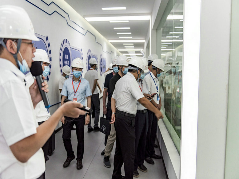 觀摩團一行近距離觀看智能化控制生產(chǎn)線