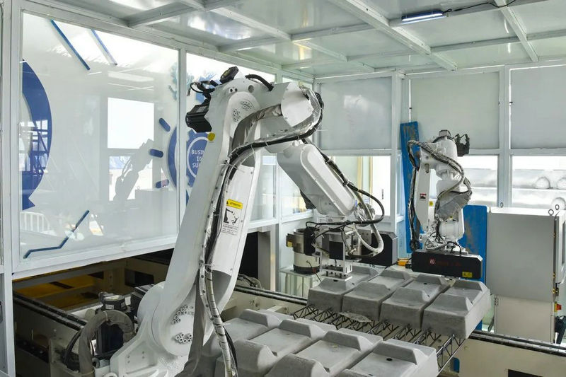 隨后,觀摩團一行人現(xiàn)場參觀了自動化軌枕生產(chǎn)線,在套管螺旋筋組裝工位上,很多人拿出手機拍攝了三個機器手協(xié)同作業(yè)的場景,孔遁總詳細詢問了各工位升級創(chuàng)新成果和信息化系統(tǒng)的應用,檢查了雙塊式軌枕外觀質(zhì)量及尺寸,高度認可蘄春軌枕廠在智能化探索與創(chuàng)新中所取得的優(yōu)異成績。