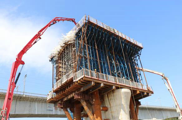 0號(hào)塊是連續(xù)梁施工的第一步,也是最關(guān)鍵的一步,更是本項(xiàng)目的重要施工節(jié)點(diǎn),為了確保本次0號(hào)塊澆筑的順利完成,項(xiàng)目高度重視,澆筑前,項(xiàng)目領(lǐng)導(dǎo)牽頭多次召開準(zhǔn)備會(huì)、部署會(huì)、推進(jìn)會(huì),從物資供應(yīng)、設(shè)備保障、技術(shù)支撐等方面對(duì)澆筑工作做細(xì)致系統(tǒng)的部署。澆筑過程中,項(xiàng)目主要管理人員全程跟班作業(yè),協(xié)調(diào)混凝土供應(yīng)、工序銜接等工作,確保此次0號(hào)塊施工的安全、質(zhì)量、有序可控。(文/圖 李航天)