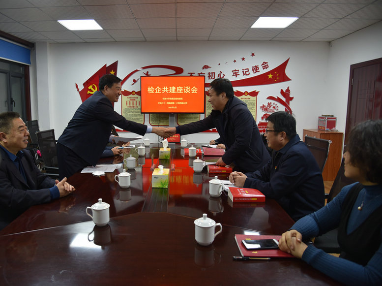 1月14日下午,新疆維吾爾自治區(qū)人民檢察院烏魯木齊鐵路運輸檢察分院黨組書記、檢察長馬士軍一行5人到中鐵二十一局一公司總部與公司董事長、黨委書記李啟成、黨委副書記、總經(jīng)理楊紅亮、黨委副書記、紀委書記關(guān)崇屹等人舉行了座談,互相介紹了檢察院、一公司最新改革發(fā)展情況,增進了雙方的了解。