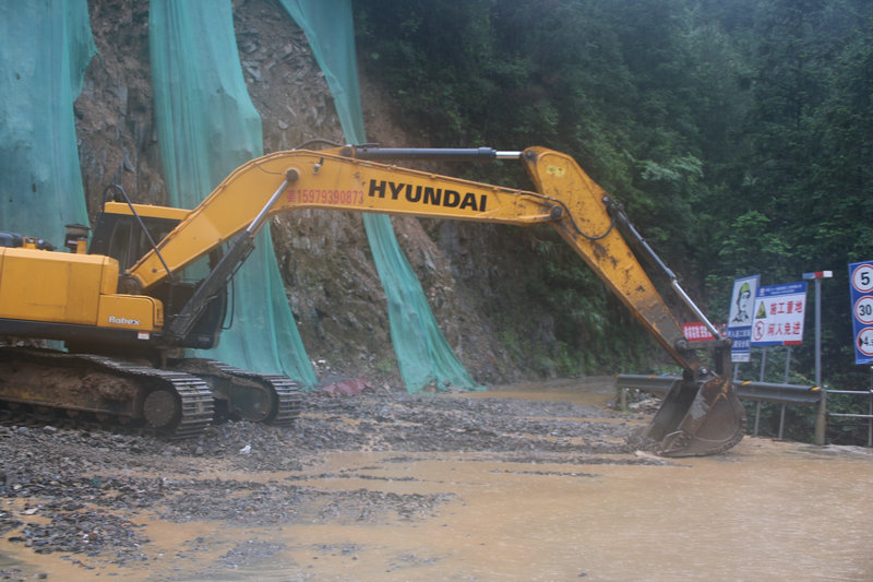 該標(biāo)段位于贛皖兩省交界的江西婺源沱川鄉(xiāng),這里群山連綿,溝壑縱橫,林木茂密。在連續(xù)多日陰雨后,又遇瓢潑大雨,極易爆發(fā)山洪、山體滑坡等自然災(zāi)害,嚴(yán)重威脅祁婺高速參建人員和設(shè)備安全。項目部領(lǐng)導(dǎo)冒雨奔赴工地現(xiàn)場,一面積極指揮施工人員和設(shè)備避險,一面帶領(lǐng)員工疏通溝渠、清理道路塌方,確??h道、鄉(xiāng)道、村道和施工便道暢通。在不到3個小時的短暫時間內(nèi),項目部出動挖掘機、裝載機和車輛16臺,清理道路塌方500多方,疏通道路13公里,疏通防排水溝渠360多米。同時對河道狹窄處,調(diào)派挖掘機進行拓寬,對因山洪攜帶泥石堵塞的河道進行清淤,確保河道暢通、行洪順暢,從而保證農(nóng)田和民房安全。
