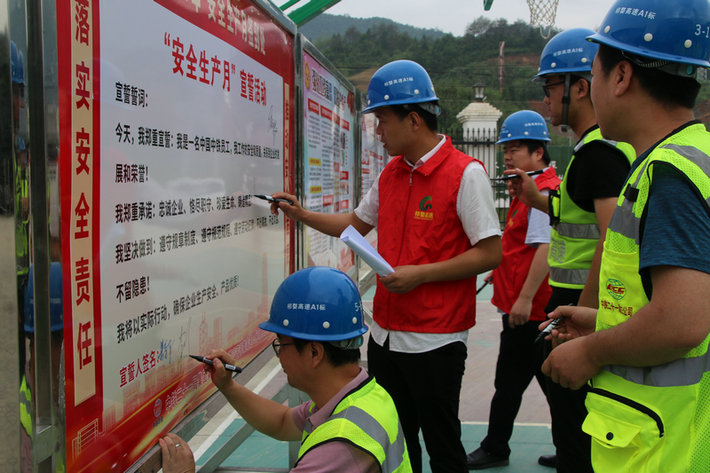 今年是20個安全生產(chǎn)月,也是祁婺高速施工的關(guān)鍵之年,安全生產(chǎn)關(guān)系著每一個員工的家庭幸福,必須常抓不懈。參加“安全生產(chǎn)月”啟動儀式的同志,面對誓言墻舉手宣誓:安全生產(chǎn)是我的崇高職責,為了項目建設,為了自己和他人生命安全,作為一名負責任的企業(yè)員工,我保證自覺做到不違章作業(yè),不違反勞動紀律,嚴格履行安全職責……。宣誓后,員工們分別鄭重在“安全生產(chǎn)月”誓言墻上簽下自己的名字。