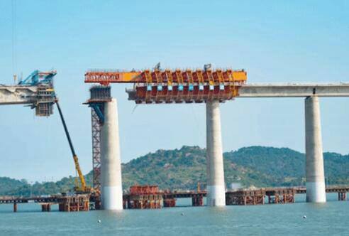 40.6米大跨度移動(dòng)模架現(xiàn)澆梁首次在高鐵施工中應(yīng)用,尚無(wú)可借鑒的施工經(jīng)驗(yàn)。自2019年6月首孔移動(dòng)模架現(xiàn)澆梁施工以來(lái),中鐵十一局建設(shè)者結(jié)合海域施工特點(diǎn),加大科研攻關(guān)力度,克服了沿海地區(qū)臺(tái)風(fēng)多、晝夜溫差大等不利條件,在保證安全質(zhì)量的前提下,加快工程建設(shè)進(jìn)度,每孔移動(dòng)模架現(xiàn)澆梁施工僅用20天,大幅提升了施工效率。目前,湄洲灣跨海大橋已完成專利申報(bào)56項(xiàng),6項(xiàng)科研成果被鑒定為國(guó)際先進(jìn)水平,為今后大跨度移動(dòng)模架現(xiàn)澆梁施工積累了寶貴經(jīng)驗(yàn)。