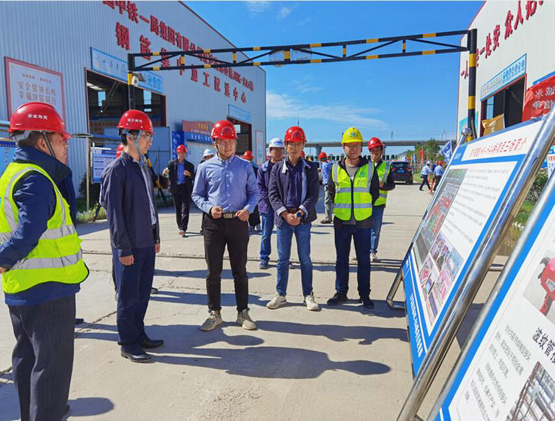 周進(jìn)副局長(zhǎng)一行來(lái)到項(xiàng)目拌合站,通過(guò)標(biāo)準(zhǔn)化建設(shè)施工展板了解了項(xiàng)目整體布置,重難點(diǎn)工程,箱梁和板梁預(yù)制進(jìn)度,聽(tīng)取了一些微創(chuàng)新,比如梁長(zhǎng)速讀,梁高控制以及“安全管理最后一公里”落實(shí)情況等方面的簡(jiǎn)單匯報(bào)。