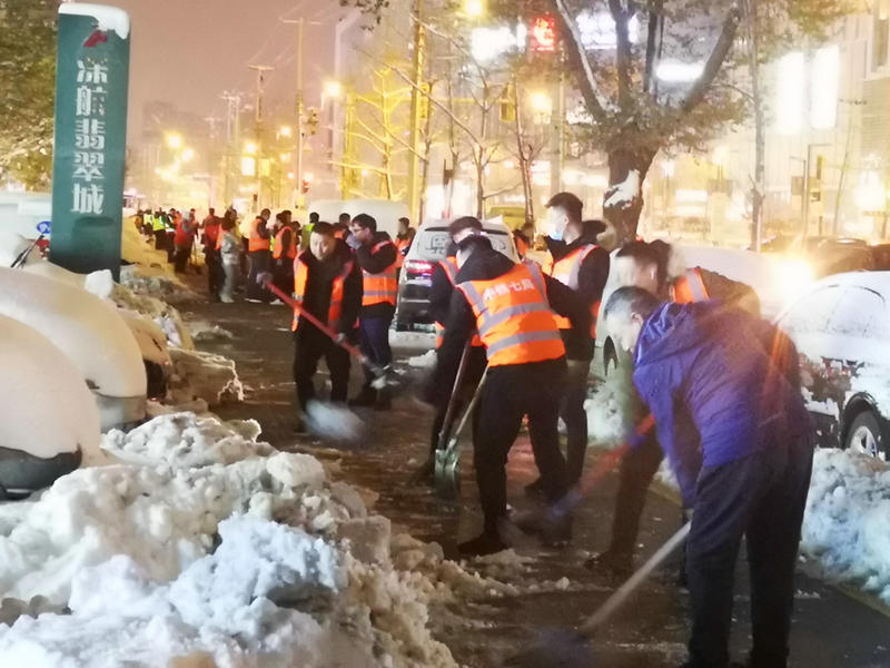 9日中午,沈陽市除雪指揮部再次發(fā)出倡議,號召廣大市民自己動手、清掃家園,迅速行動,走上街頭清冰除雪,共同打造暢通、安全出行環(huán)境。特大暴雪仍在繼續(xù),為及時清除全市路面積雪,切實保障城市道路暢通、交通安全、市容整潔、市民生產(chǎn)生活便利。晚7點,中鐵七局二公司再次響應號召,精心組織100余名職工、多臺機械,利用工作休息時間,主動走上街頭清除沈陽市和平區(qū)深航翡翠城社區(qū)周圍街道積雪,堅持為沈陽建設(shè)“創(chuàng)城促振興 創(chuàng)建惠民生”文明城市貢獻央企力量。經(jīng)過兩個多小時的連續(xù)奮戰(zhàn),累計破冰除雪3500平方米,確保道路安全暢通。