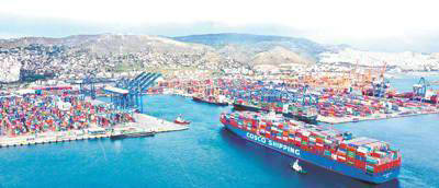 2019年2月15日,中國超大型集裝箱貨輪抵達(dá)希臘比雷埃夫斯港。 新華社發(fā)