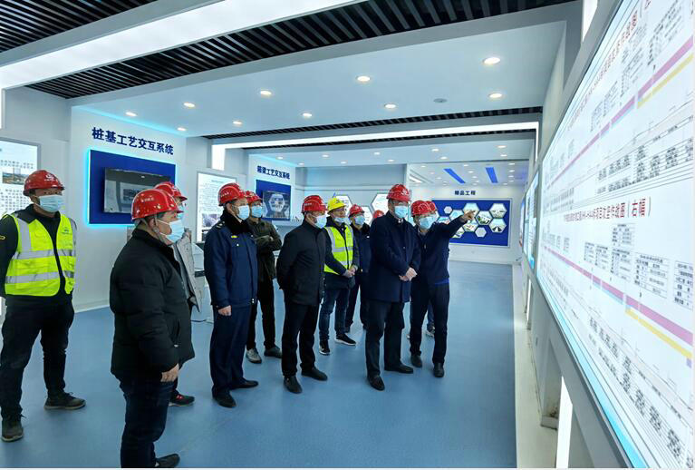 楊金國(guó)一行參觀了項(xiàng)目部產(chǎn)業(yè)工人培訓(xùn)中心,了解了項(xiàng)目施工整體計(jì)劃以及建設(shè)管理重難點(diǎn),對(duì)施工安全體驗(yàn)式教學(xué)及墩柱、樁基、箱梁等工藝交互系統(tǒng)的實(shí)用程度及建設(shè)情況表示高度認(rèn)可。他強(qiáng)調(diào),要發(fā)揮好產(chǎn)業(yè)工人培訓(xùn)中心的示范作用,積極探索和創(chuàng)新培訓(xùn)方式,提高一線作業(yè)人員的技能素質(zhì),為工程高質(zhì)量建設(shè)注入新活力。同時(shí)對(duì)項(xiàng)目部后續(xù)建設(shè)提出四點(diǎn)寶貴意見,一是繼續(xù)加大產(chǎn)業(yè)工人培訓(xùn)中心的使用力度,不斷加強(qiáng)產(chǎn)業(yè)工人技能水平及安全意識(shí);二是要抓好安全質(zhì)量工作,落實(shí)各項(xiàng)安全質(zhì)量管理措施,加強(qiáng)班組班前教育、技術(shù)交底管理,做到不留隱患;三是持續(xù)抓好疫情常態(tài)化防控,嚴(yán)格做好返鄉(xiāng)返崗人員排查檢測(cè),確保零感染;四是要繼續(xù)在精細(xì)化施工、交通導(dǎo)改、施工組織等方面謀求突破,在建設(shè)過程中及時(shí)總結(jié)經(jīng)驗(yàn)成果,打造滿意型、精品級(jí)工程。