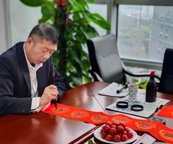 1月16日下午,天晟公司副書(shū)記杜曉飽蘸濃情、揮毫潑墨,現(xiàn)場(chǎng)寫(xiě)對(duì)聯(lián)、送祝福,一副意蘊(yùn)豐富的春聯(lián),伴隨著濃濃的墨香,讓大家感受到了濃濃的年味。大家手捧祝福,合影留念,共同祝愿2022年北新集團(tuán)發(fā)展越來(lái)越好!