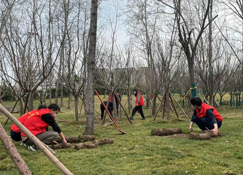 參與志愿服務(wù)鋪設(shè)草坪工作
