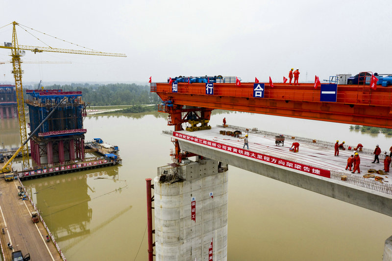 中鐵三局線橋公司黃黃鐵路2標(biāo)完成重點(diǎn)控制性工程之一蘄河特大橋架設(shè)節(jié)點(diǎn)工期