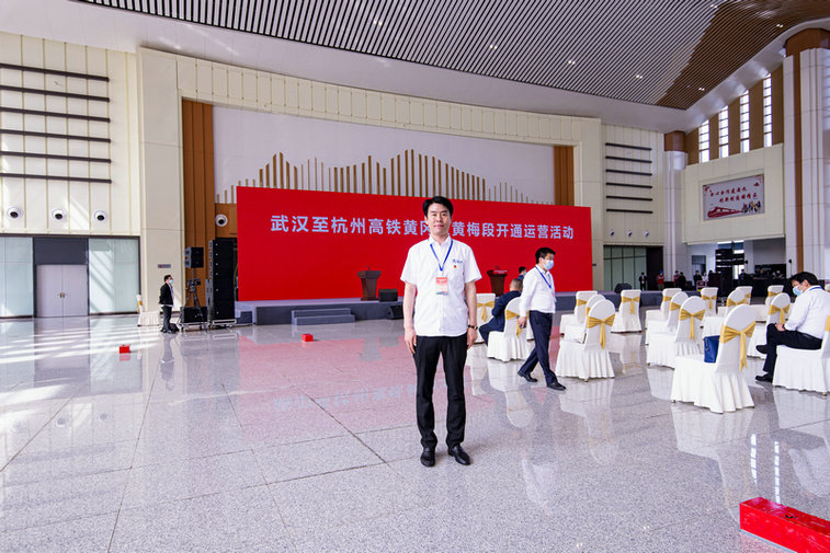 中鐵三局線橋公司參建黃黃高鐵員工代表在黃梅東站開通運(yùn)營(yíng)活動(dòng)主會(huì)場(chǎng)