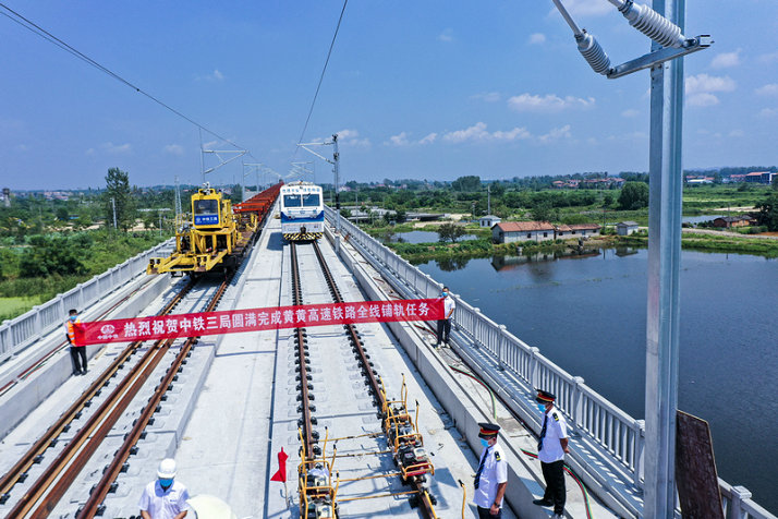 2021年7月10日鋪軌黃黃高鐵控制性工程之一的蘄河特大橋
