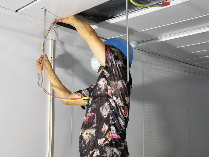 電工正在房間布線項(xiàng)目經(jīng)理劉維號(hào)表示。“援建方艙醫(yī)院是央企‘疫’不容辭的責(zé)任。這次搶建茅尾海方艙醫(yī)院,體量大、工期緊,是一場(chǎng)硬仗,我們要頂住壓力,分秒必爭(zhēng),早日?qǐng)A滿完成建設(shè)任務(wù)。”