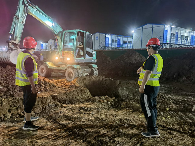 據(jù)了解,施工人員仍在爭(zhēng)分奪秒的奮戰(zhàn)在施工第一線。他們晝夜不停歇、奮力往前趕,力爭(zhēng)4月26日全面完成建設(shè)。轟鳴的機(jī)器響徹現(xiàn)場(chǎng)、如白晝的燈光照亮前方。星月為伴、春風(fēng)助力,施工現(xiàn)場(chǎng)遍地開花,點(diǎn)挨點(diǎn),線接線,畫出了一幅壯觀的施工地圖。參建人員持續(xù)發(fā)揚(yáng)特別能吃苦、特別能戰(zhàn)斗、特別能奉獻(xiàn)的優(yōu)良作風(fēng)。繼續(xù)奮戰(zhàn)在欽州茅尾海方艙醫(yī)院的建設(shè)一線。