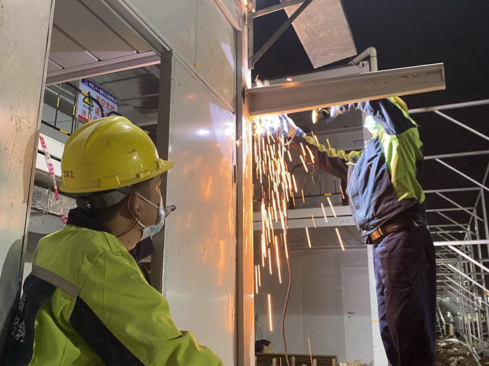 圖為電焊工加班加點(diǎn)施工