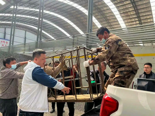 經(jīng)專業(yè)人員檢查確認(rèn),這是一只體長約1.2米、體重約30公斤的狍子,其右后腿有外傷,需要進(jìn)行更為專業(yè)的救護(hù)。經(jīng)過一番精心準(zhǔn)備,大家齊心協(xié)力把這只狍子裝進(jìn)籠子,用汽車運(yùn)往通化市野生動物救助中心(通化市紅嶺公園)實(shí)施救護(hù),并將其放歸此處予以保護(hù)。