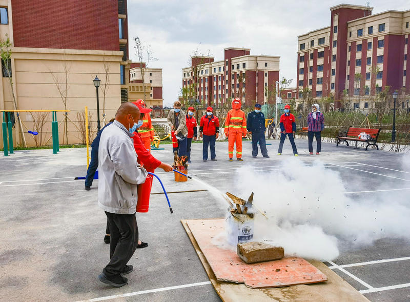警報(bào)一響,參與演練的居民群眾和物業(yè)工作人員在物業(yè)經(jīng)理的引導(dǎo)下,從樓棟有序撤出,迅速有序到達(dá)指定安全位置,用時(shí)不到5分鐘全部安全疏散。接著,項(xiàng)目經(jīng)理對(duì)滅火器的使用,遇到火災(zāi)時(shí)的應(yīng)變與生存逃生,自救與互救的基本方法,小區(qū)常見防火安全隱患及常見火災(zāi)類型等開展培訓(xùn),并進(jìn)行了滅火演練。