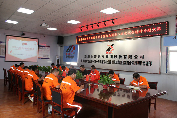 石河子訊(王鳳)6月28日上午,北新順通路橋公司組織召開專題學(xué)習(xí)會議,傳達(dá)學(xué)習(xí)貫徹兵團(tuán)第八次黨代會精神。公司黨支部書記、董事長王軍良傳達(dá)會議精神并作全面安排部署。