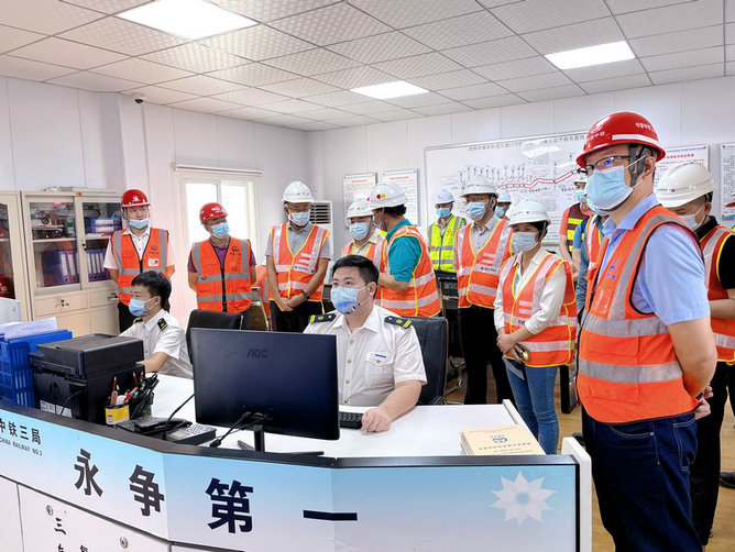 2022年10月16日,深圳市發(fā)展和改革委員會副主任鄭鐵軍蒞臨深圳地鐵13號線后海基地調(diào)度中心檢查指導(dǎo)工作,港鐵中鐵電化軌道交通(深圳)有限公司總經(jīng)理孟榮輝、副總經(jīng)理吳啟中、安全總監(jiān)蔡偉森,中鐵三局集團(tuán)線橋有限公司工會主席邸向軍,項目經(jīng)理劉志權(quán)、項目運(yùn)輸副經(jīng)理楊璐等相關(guān)負(fù)責(zé)人陪同檢查。