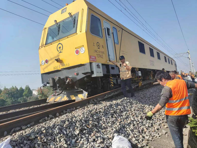 “師傅,這里連續(xù)有幾塊膠墊偏斜,請一會整好。在那邊有兩個螺絲扭力矩不到位,我在枕木面做了標(biāo)記等會兒去復(fù)擰一下……”10月21日,在京九下行線K790+520公里處,中國鐵路上海局集團(tuán)有限公司阜陽工務(wù)段亳州線路車間王寨示范隊(duì)職工胡天賜監(jiān)控大列換軌質(zhì)量,發(fā)現(xiàn)連續(xù)幾塊膠墊歪斜及扣件扭力矩等問題,立即通知施工人員進(jìn)行整改。