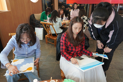 3月5日,西安建筑分公司工會組織40余名機關(guān)及各項目部女職工代表在大雁塔南廣場開展了以“詩情畫意展風(fēng)采 巾幗聚力促發(fā)展”為主題的三八婦女節(jié)主題活動。在設(shè)置的“詩句搶答、詩詞朗誦、肌理繪畫、你比我猜”等游戲環(huán)節(jié),女職工們爭先參與其中,歡聲笑語此起彼伏、現(xiàn)場氣氛熱鬧而溫馨。間隙,卸下繁忙工作女的職工們一改往日工作上的嚴(yán)肅和工裝的模樣,大家圍坐在一起邊,品茶言歡,沐浴春光,同時用手手機記錄活動中的美好瞬間。