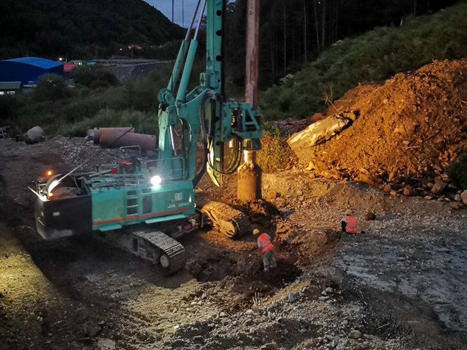 據(jù)黑溝河大橋負責人梁子威介紹,黑溝河大橋所在地線路地形起伏、溝谷縱橫,地質(zhì)條件差,交通不便,加之當?shù)赜謱儆诟呔暥葒篮貐^(qū),最冷月平均氣溫-16.3℃,地面最大凍結(jié)深度達1.8米,全年有效施工期短,施工難度大。為保證施工進度按計劃進行,項目團隊制定了詳細的施工方案,并在施工過程中根據(jù)天氣、地質(zhì)、機械和物資材料等因素的變化隨時進行調(diào)整,最大程度保障施工生產(chǎn)的順利進行。