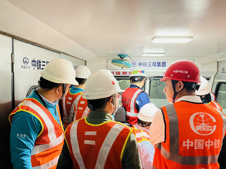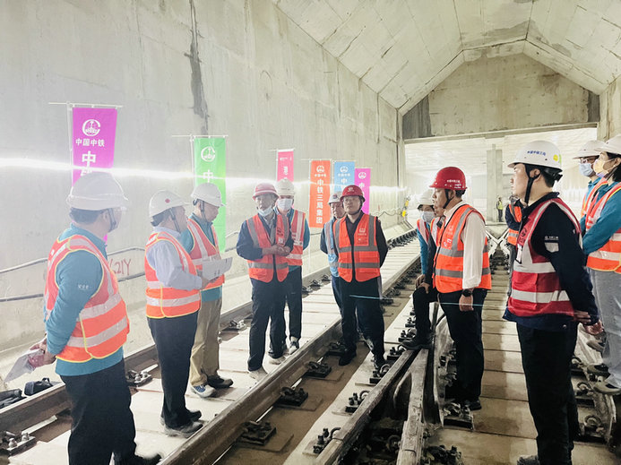 港鐵中鐵電化軌道交通(深圳)有限公司總經(jīng)理孟榮輝、副總-建設(shè)吳啟中、安全總監(jiān)蔡偉森、副總-設(shè)計(jì)王昭斌,中鐵三局集團(tuán)線橋有限公司總經(jīng)理齊長(zhǎng)寧、副總經(jīng)理邸向軍等相關(guān)領(lǐng)導(dǎo)蒞臨參加了短軌鋪通儀式,從深圳灣口岸站乘坐新能源軌道車(chē)至科苑站。在所有建設(shè)、運(yùn)輸作業(yè)人員的精誠(chéng)配合下,軌道車(chē)在安全可靠的軌道限界內(nèi)平穩(wěn)順暢運(yùn)行,孟總對(duì)鋪軌成果表示十分滿意,并對(duì)全體運(yùn)輸人員的標(biāo)準(zhǔn)化作業(yè)模式致以贊揚(yáng)。儀式完成后,孟總再次強(qiáng)調(diào)要高度重視安全生產(chǎn)工作、嚴(yán)格把控安全隱患風(fēng)險(xiǎn),以安全生產(chǎn)為準(zhǔn)繩為深圳城市軌道交通13號(hào)線早日開(kāi)通筑牢安全保障。