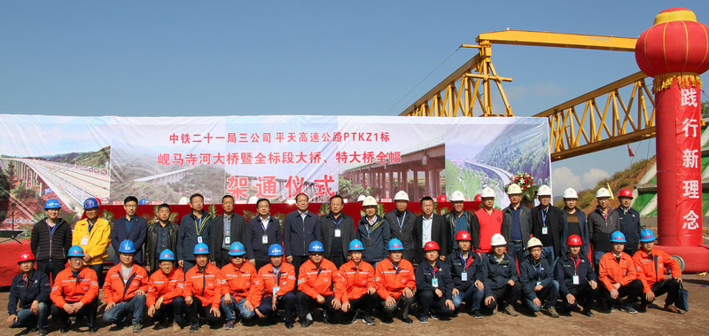 在橋梁架通慶典儀式上,中鐵二十一局三公司副總經(jīng)理魏惠民代表公司首先致辭,感謝業(yè)主、地方各級政府部門、以及全體建設者的作出的辛勤努力;然后由項目部常務副經(jīng)理、總工程師柳吉煥對全標段大橋、特大橋建設情況、施工工藝進行簡要匯報;接下來,甘肅省公路建設管理集團有限公司總經(jīng)理張曉軍、華亭縣交通運輸局局長關永平、甘肅省公路建設管理集團有限公司副總經(jīng)理、平天高速平?jīng)龆雾椖哭k主任李文芙、甘肅新科建工監(jiān)理咨詢有限公司副總經(jīng)理、PTKZJL1標駐地高監(jiān)劉鵬舟等先后作了書面講話,熱烈祝賀中鐵二十一局三公司PTKZJL1標段特大橋、大橋全幅勝利鋪通。架通儀式結束后,各位領導十分高興地與建設者合影留念。