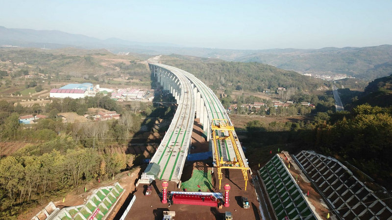 峴馬寺河大橋最后一片梁架設